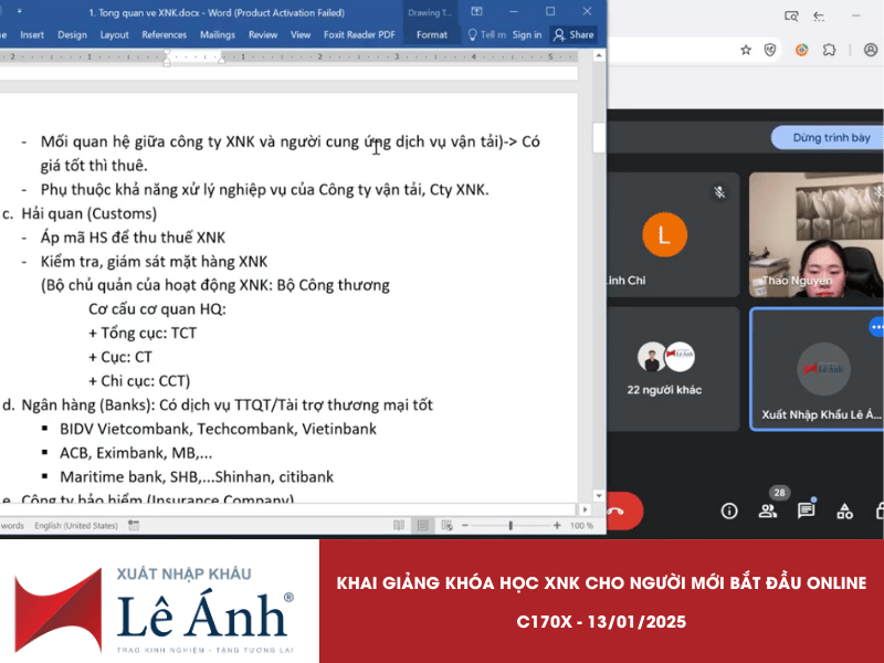 Ngày 13/01/2025, Xuất nhập khẩu Lê Ánh hân hoan chào đón 28 học viên tham gia lớp học xuất nhập khẩu online C170X dành cho người mới bắt đầu. Buổi khai giảng diễn ra sôi nổi với sự góp mặt của các bạn học viên từ khắp mọi miền, hứa hẹn một hành trình học tập đầy thú vị và bổ ích.