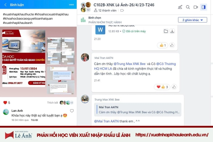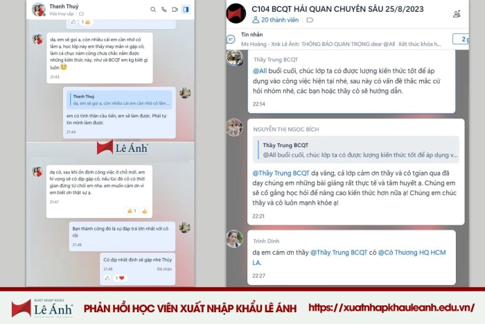 - Tham gia vào Cộng đồng Gia đình Xuất nhập khẩu và nhóm nghiệp vụ chung Lê Ánh – nơi luôn có sự tư vấn, hỗ trợ kịp thời của các chuyên gia hàng đầu.