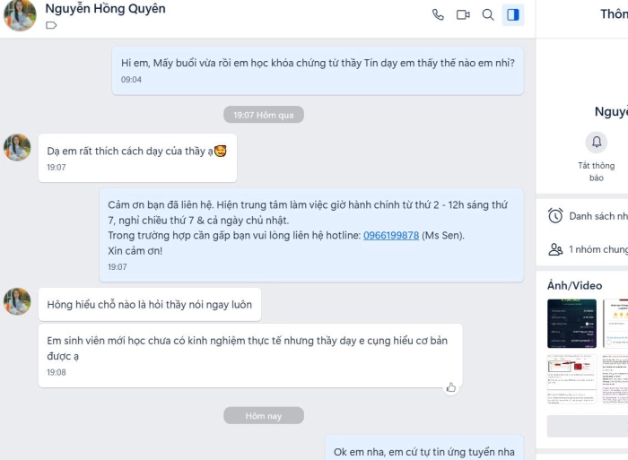 Ngoài ra, thầy cũng là người dành nhiều tâm huyết trong việc hướng nghiệp cho học viên, giúp học viên nhận ra được điểm mạnh, điểm yếu của bản thân để lựa chọn công việc phù hợp. Vì vậy, việc học thầy Kiên trong khóa học sale logistics sẽ giúp học viên có thể tiếp cận cách làm nghề nhanh nhất.
